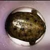 另见两件活体稚山瑞鳖,背盘长约49.0毫米,宽46.5毫米,呈卵圆形,后缘较宽,脊棱明显;背盘表面及棱上瘰粒密集,排列成纵行并与体轴平行。背盘前缘有一列大瘰粒,其后有2-3排小结节。体背黄橄榄色,一稚鳖有棕黑色的小圆斑,9枚,1枚位于脊部,8枚分列于两侧。另一稚鳖斑点不显。稚鳖自头顶开始,有一呈倒V型黄橄榄色斑,并向颈部扩展。其前端有一棕黄色横斑,向两侧达颞部。腹部均为肉色,脐孔已不显。