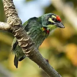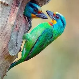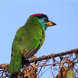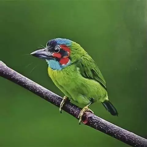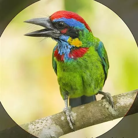 因为拥有良好的保护色,若不鸣叫很难发现它们的身影。以果实、浆果为主食,繁殖期育雏时则常以昆虫喂食幼鸟。常发出单调浑厚的“咯、咯、咯…”叫声,像极了和尚敲打木鱼的声音,加上头部参杂红、黄、蓝、绿、黑五色,所以又称为“森林里的花和尚”。繁殖期会在树干以其强而有力的嘴喙啄洞,巢筑于其内。