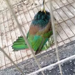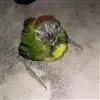 长20cm 嘴粗厚 ,黑色 ,脚铅灰色 。头部大致为蓝色 ,额 、喉黄色 ,眉斑杂有黑色羽毛 ,眼先有红色斑点 ,前颈亦有红斑 。后颈 、背部鲜绿色 , 胸以下鲜黄绿色 。