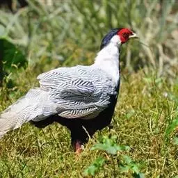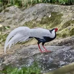 白颈长尾雉:大型鸡类,体长81厘米,体型大小和雉鸡相似。雄鸟头灰褐色,颈白色,脸鲜红色,其上后缘有…