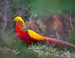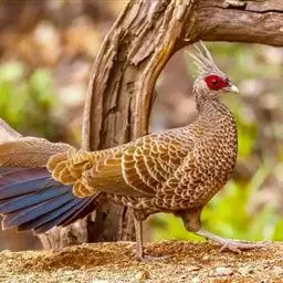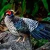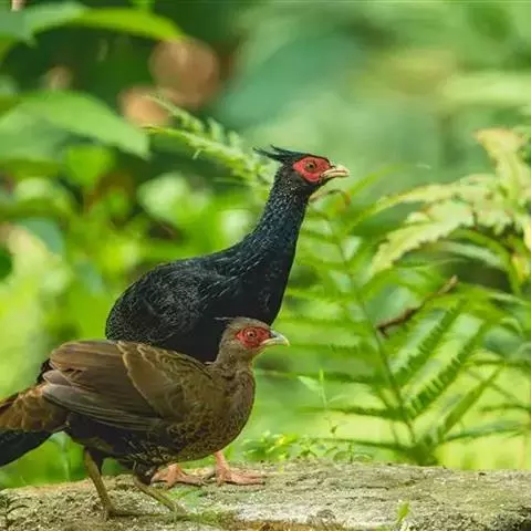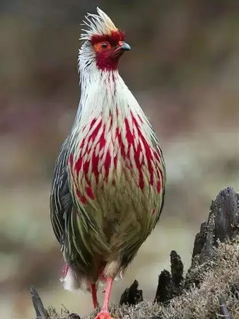 血雉雉科血雉属鸟类,别名血鸡、松花鸡,血雉的雄鸟大覆羽、尾下覆羽、尾上覆羽、脚、头侧、腊膜为红色,…