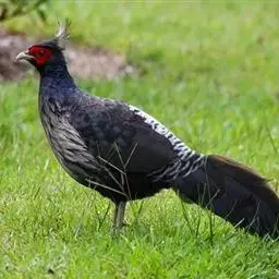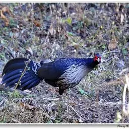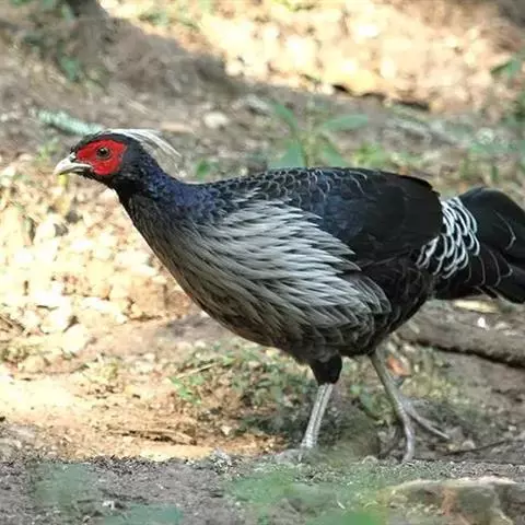黑长尾雉大型鸡类,体长53~88厘米。雄较雌大。雄鸟通体紫蓝色,脸鲜红色,翅上有一条显著的白色翅斑…
