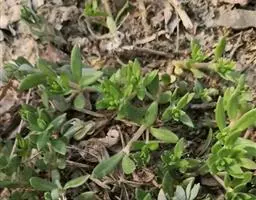 多年生草本,高15-25厘米。茎下部节上生根,上部直立,无毛。叶对生,倒卵形至倒卵状匙形,长17-20毫米,宽6-8毫米,先端钝圆,基部渐狭,入于假叶柄,基部有短距。