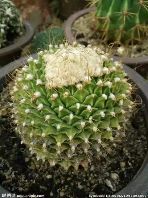 银手球,仙人掌科乳突球属,植株群生,小短圆筒形。原产墨西哥伊达尔戈州。