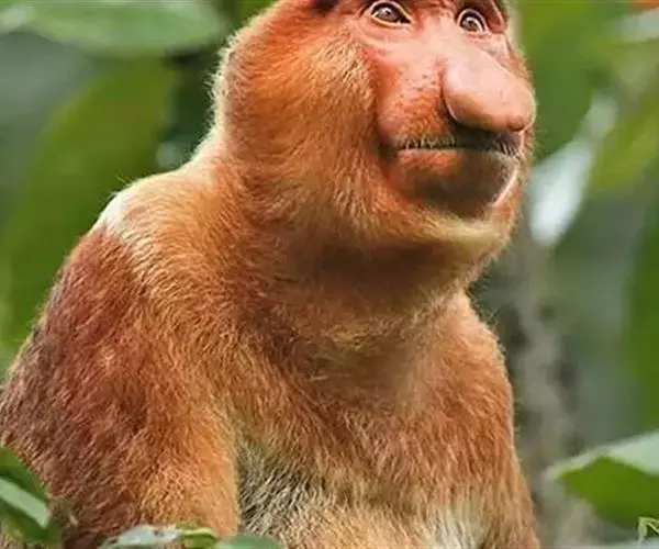 它们的鼻子大得出奇,其中雄性猴子随着年龄的增长鼻子越来越大,最后形成像茄子一样的红色大鼻子,激动的时候,大鼻子就会向上挺立或上下摇晃,而雌性的鼻子却比较正常。