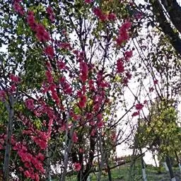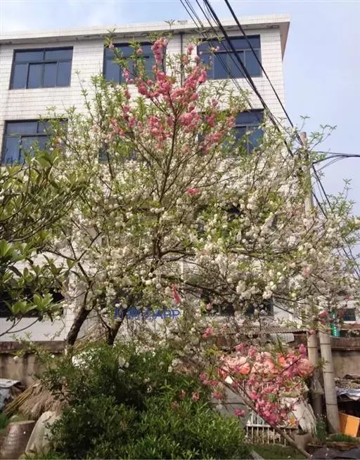 桃(Amygdalus persica)的一个变形,形态特征同桃树,特别之处在花色,通常一株树上有两个花色,有时同一朵花半红半白,非常奇特。花期3-4月。