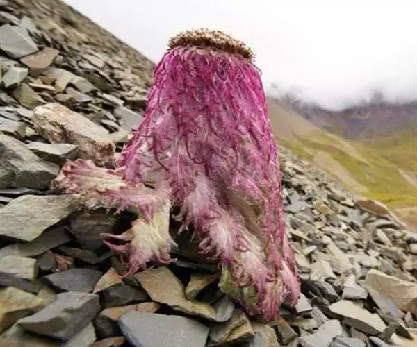 水母雪兔子(学名:Saussurea medusa Maxim.)是菊科、风毛菊属的多年生多次结实草本植物。根状茎细长,有黑褐色残存的叶柄,有分枝,上部发出数个莲座状叶丛。