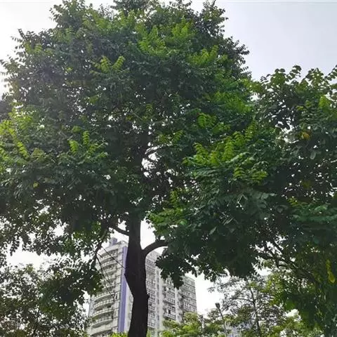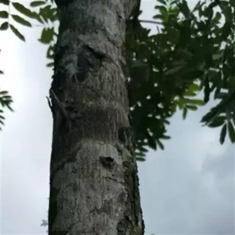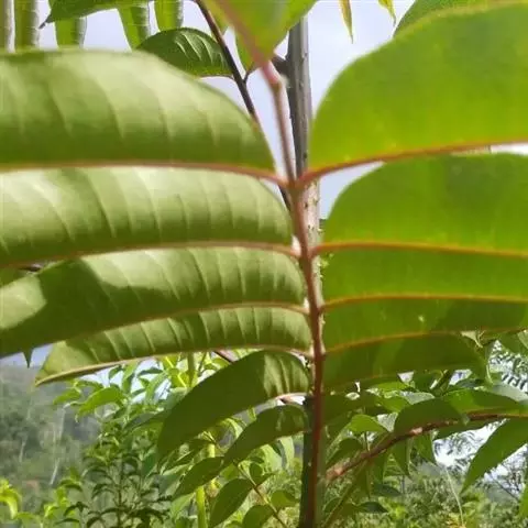 乔木,高20-30米。叶为奇数羽状复叶,长30-50厘米,有小叶9-11(-15)片;小叶对生,初时膜质,后变亚革质,在强光下可见很小的透明斑点,长椭圆形,长18-20厘米,宽约5厘米,最下部的一对较小,先端渐尖,基部楔形或宽楔形,有时一侧稍带圆形,偏斜,两面均无毛,侧脉每边11-12条,纤细,边全缘;小叶柄长6-12毫米。