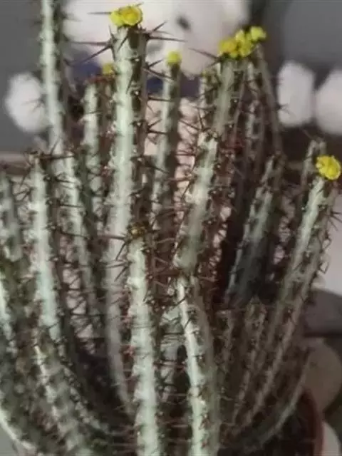 魁伟玉原产南非,是一种大戟科的多年生肉质植物,植株具粗圆筒形肉质茎,有10条以上的突出棱,…