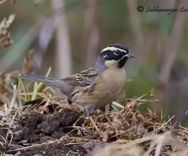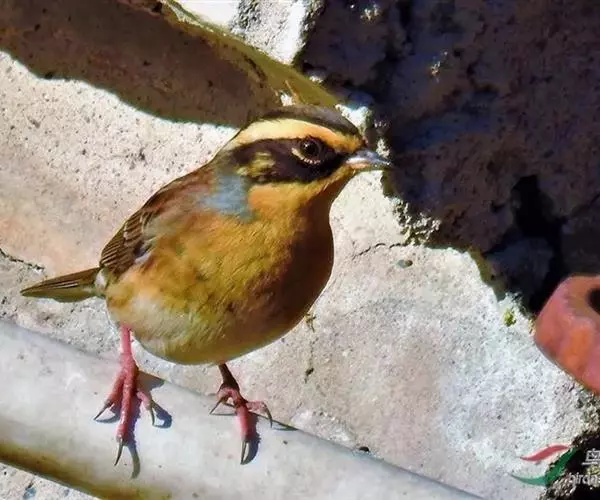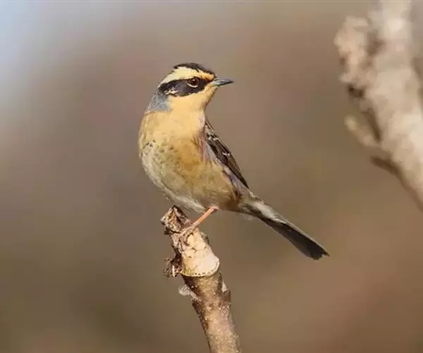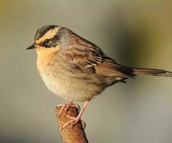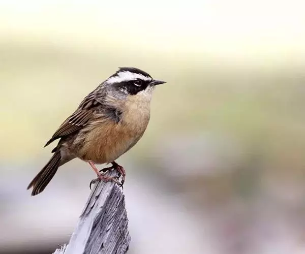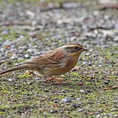 额、头顶、枕、头侧黑色,眉纹皮黄色或棕黄色、长且宽阔,从额基侧一直延伸到头后侧。后颈、背、肩栗褐色,各羽均具有黑褐色羽干纹或羽干纹不明显。有的背、肩呈淡褐或棕褐色具栗色羽干纹。腰和尾上覆羽灰褐或橄榄褐色,尾灰褐或黑褐色,翅上覆羽褐色或黑褐色。中覆羽和大覆羽尖端黄白色或棕色,在翅上形成两道明显的翅斑。飞羽褐色或黑褐色,外翈羽缘淡红褐色。颏、喉、上胸棕色或黄褐色,胸部羽基黑褐色微呈鳞状斑,胸侧和两胁黄褐色或棕色、具栗褐色纤细纵纹,腹中部和尾下覆羽皮黄色或皮白色沾棕。