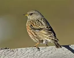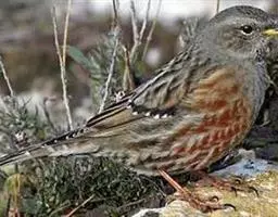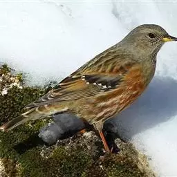 棕眉山岩鹨(学名:Prunella montanella)是岩鹨科、岩鹨属小型鸟类,体长13-16厘米。头和头侧黑色,有一长而宽阔的皮黄色眉纹从额基一直向后延伸至后头侧,在黑色的头部极为醒目。背、肩栗褐色具黑褐色纵纹。两翅黑褐色,翅上有黄白色翅斑。下体黄褐色或皮黄色,胸侧和两胁杂有细的栗褐色纵纹。