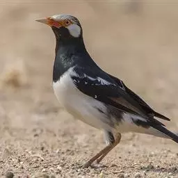 斑椋鸟:是中等体型的黑白色椋鸟,体长24厘米。头顶、头侧、翼斑、腰及腹部白色,喉、胸及上体余部黑色,…