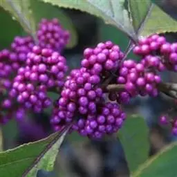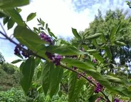 紫珠是唇形科、紫珠属落叶灌木,高约2米;叶片卵状长椭圆形至椭圆形,顶端长渐尖至短尖,基部楔形,…