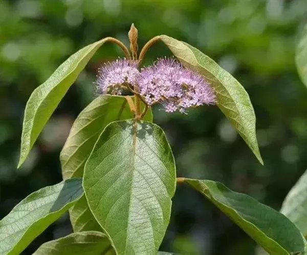 聚伞花序宽8-11厘米,7-9次分歧;花序梗长3-5厘米;花柄及萼筒密生星状毛,萼齿不明显或截头状;花冠紫色,长约2毫米,无毛,雄蕊长过花冠约2倍,药室纵裂;子房有星状毛。