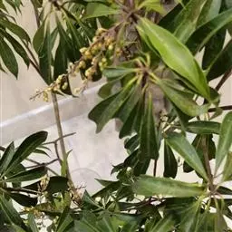 马醉木(学名:Pieris japonica (Thunb.) D. Don ex G. Don)是杜鹃花科,马醉木属常绿灌木或小乔木,高可达4米;树皮棕褐色,冬芽倒卵形,叶片革质,密集枝顶,无毛,表面深绿色,背面淡绿色,叶柄腹面有深沟,总状花序或圆锥花序顶生或腋生,直立或俯垂,花序轴有柔毛;萼片三角状卵形,花冠白色,坛状,无毛,花丝纤细,有长柔毛,子房近球形,无毛;花柱细长,蒴果近于扁球形,4-5月开花,7-9月结果。