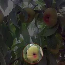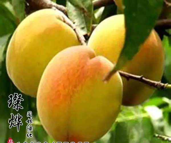7、黄金:国外引进。晚熟种,单果重150克,果近圆,果顶圆,微凹,果皮金黄,阳面有玫瑰色红晕,皮较薄,可剥离。果肉黄,质细,柔软多汁,甜,有香气。鲜食加工兼用种,成熟期8月中下旬。