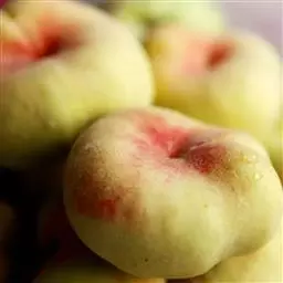 9、罐83:日本品种,2001年引进,蔷薇形花,抗冻。山东省7月初成熟,平均果重160克。果皮金黄,果肉橘黄,色卡8级,核周无红丝,不溶质,味酸稍甜,有浓郁香气。核小,加工出肉率高,也是鲜吃的优良品种。 10、黄冠:芽变品种,西北农林科技大学培育,山东省7月中旬成熟,平均单果重150克,味甜稍酸,肉不溶质,核外无红色,色卡7.5,适合罐头和速冻,也适合鲜食。坐果率高,抗病力强。 11、罐19:日本品种,山东省7月底成熟,平均单果重150克。果皮黄色,披红晕,桃毛较多。味酸多甜少,果肉金黄,适合加工。 12、锦绣:上海农科院培育,铃形大花,山东省8月上旬开始成熟,平均单果重200克。果皮金黄,披红晕,果肉浓黄,肉不溶质,色卡7级,味甜,气味香。适合加工罐头、桃脯、速冻等,也是鲜食优良品种。