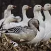 雪雁是鸭科雁属鸟类,雁属中体形大,个体重的鸟类。羽毛洁白,翼角黑色。飞行时双翼拍打用力,振翅频率高。…