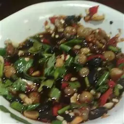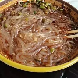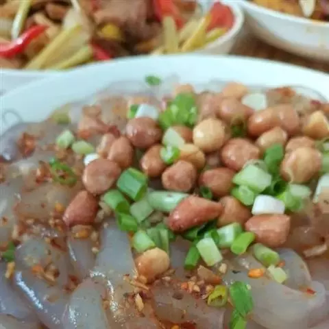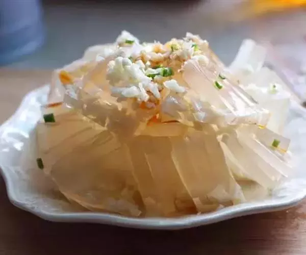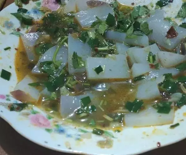 5、取食:拌以酱油、醋、蒜泥、味精、油辣子等不同佐料,即成各式清凉、爽滑的凉粉。若拌以豆豉酱,则可制成四川凉粉之正宗——川北凉粉。