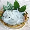 将白豌豆用井水浸泡,磨制成浆,用祖传工艺加工成凉粉状,切丝装盘。