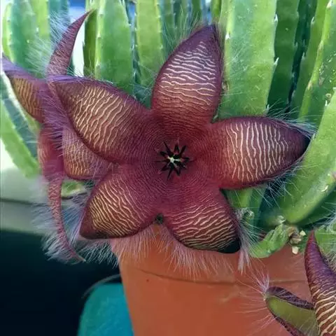 巨花犀角又称大豹皮花,是夹竹桃科犀角属的一种植物。茎粗,花大,边缘生长细毛。植株柱形多分枝呈丛生,…