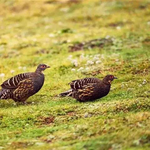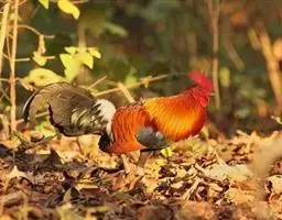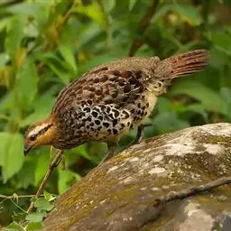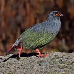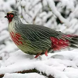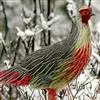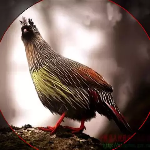 血雉雉科血雉属鸟类,别名血鸡、松花鸡,血雉的雄鸟大覆羽、尾下覆羽、尾上覆羽、脚、头侧、腊膜为红色,…