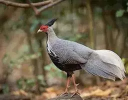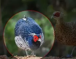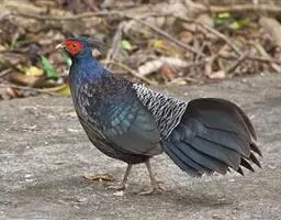 黑长尾雉大型鸡类,体长53~88厘米。雄较雌大。雄鸟通体紫蓝色,脸鲜红色,翅上有一条显著的白色翅斑…