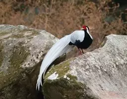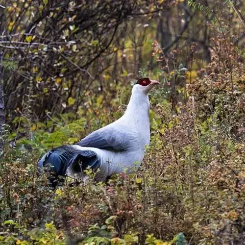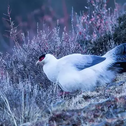 白马鸡共有四个亚种。是大型雉类,体长80-100厘米。通体大都白色,头侧绯红色;头顶具黑色短羽,…