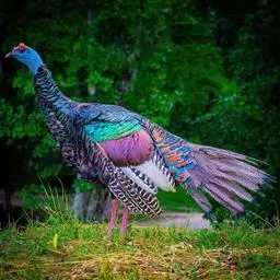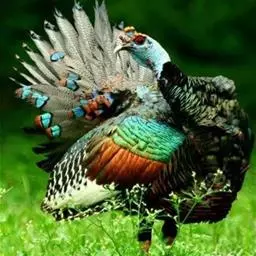 眼斑吐绶鸡:是火鸡科的两种鸟类之一。体型比普通火鸡略小些,体长1米左右,体重2.4-5.4千克,…
