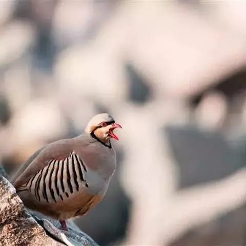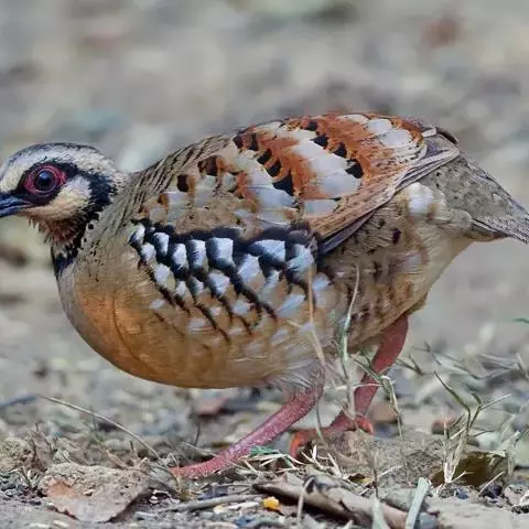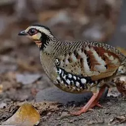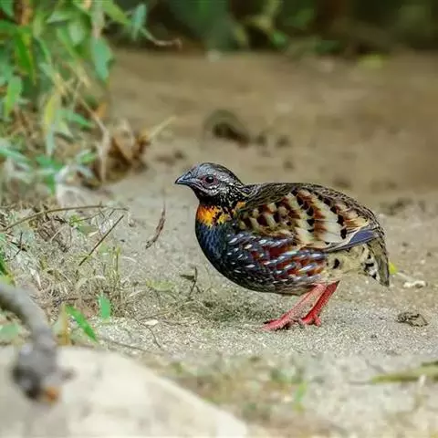 褐胸山鹧鸪:雄鸟体长22厘米,体重310克;雌鸟体长23厘米,体重220-275克。前额皮黄白色,…
