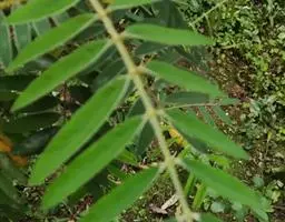 落叶灌木,丛生,高1-4米。小枝灰褐色,被疏毛,后变无毛,嫩枝密被短柔毛。叶互生,奇数羽状复叶,长10-15厘米,有小叶11-25片,基部有线形托叶;叶柄长1-2厘米;小叶卵形或椭圆形,长1-4厘米,宽0.6-2.0厘米,先端圆形,锐尖或微凹,有一短而弯曲的尖刺,基部宽楔形或圆形,上面无毛或被疏毛,下面有白色短柔毛,具黑色腺点。