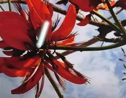翅果刺桐 Merr.)是豆科,刺桐属乔木,高12-15米,具粗壮的刺。羽状复叶具3小叶,小叶膜质,…