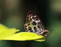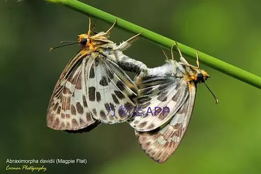 1、成虫:白弄蝶为中小型蝶种,展翅约为 40-45mm,翅表色泽、花纹特殊,无其他外观相似者。成虫前翅外观为三角形,外形横长。后翅形状为水滴形,接近三角形。雌蝶翅形较为宽圆。成蝶翅表底色为白色,翅表布满灰绿色斑纹。成虫寿命为 1-2 个月。