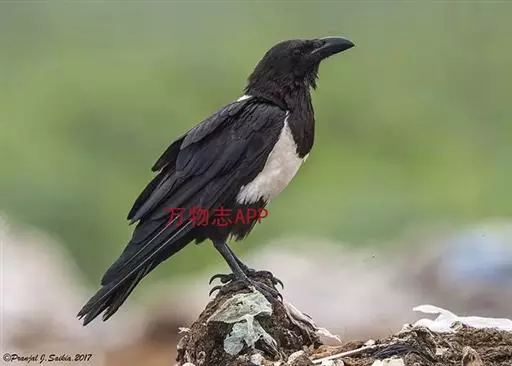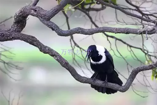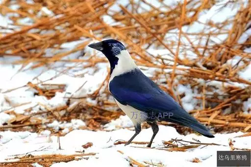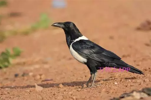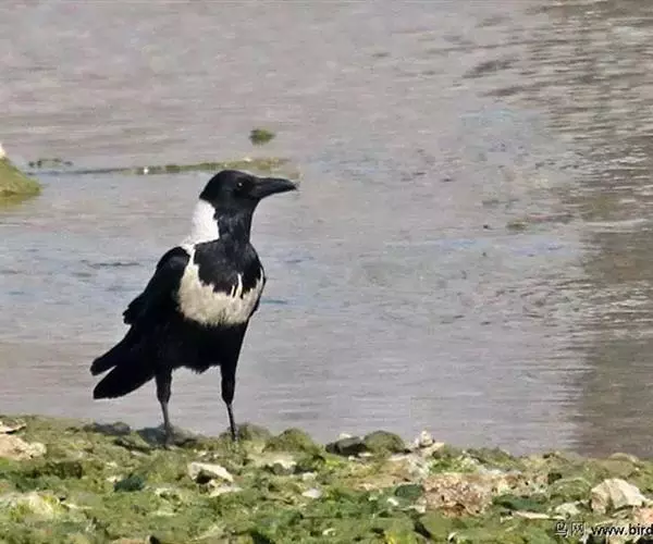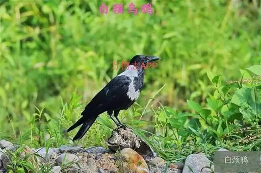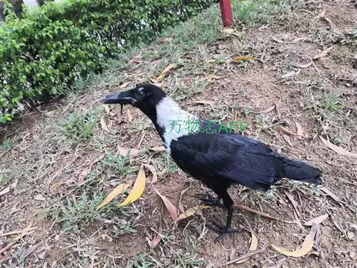 白颈鸦(学名:Corvus pectoralis):除颈背和胸有一白圈外,其余体羽全黑。 成鸟的后头、翕的上部延伸至上胸白色,这些白羽基部灰色,羽轴亦灰色;其他体羽黑色;喉羽披针状;头和喉闪淡紫蓝光泽;初级飞羽外翈闪淡绿光泽。雌雄同色。幼鸟羽色与成鸟相似,但白色部分不著,而显土黄或浅褐色;黑色部分暗纯,且无紫绿色闪光。 虹膜褐色;嘴、跗蹠、趾、爪均黑色。