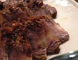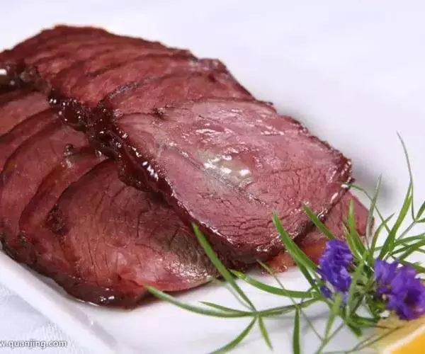 4、其间不断翻动牛肉以免粘锅,直至卤汁收干。取出牛肉待凉后切成薄片便可供食用。
