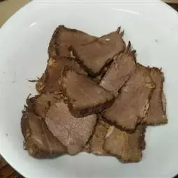 3、牛肉取出,晾凉后切薄片。