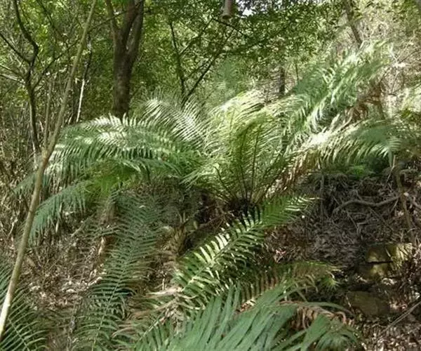 篦齿苏铁:树干圆柱形,高达3米。羽状叶长1.2-1.5米,叶轴横切面圆形或三角状圆形,柄两侧有疏刺,…