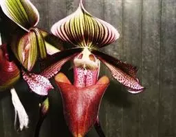 飘带兜兰(学名:Paphiopedilum parishii)兰科,兜兰属地生植物。叶基生;数枚至多枚,叶片带形、革质。花葶从叶丛中长出,花苞片非叶状;子房顶端常收狭成喙状;花大而艳丽,有种种色泽;中萼直立,花粉粉质或带粘性,退化雄蕊扁平;柱头肥厚,下弯,柱头面有乳突,果实为蒴果。6-7月开花。