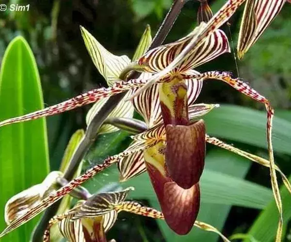 飘带兜兰 生于海拔1000-1100米的林中树干上。