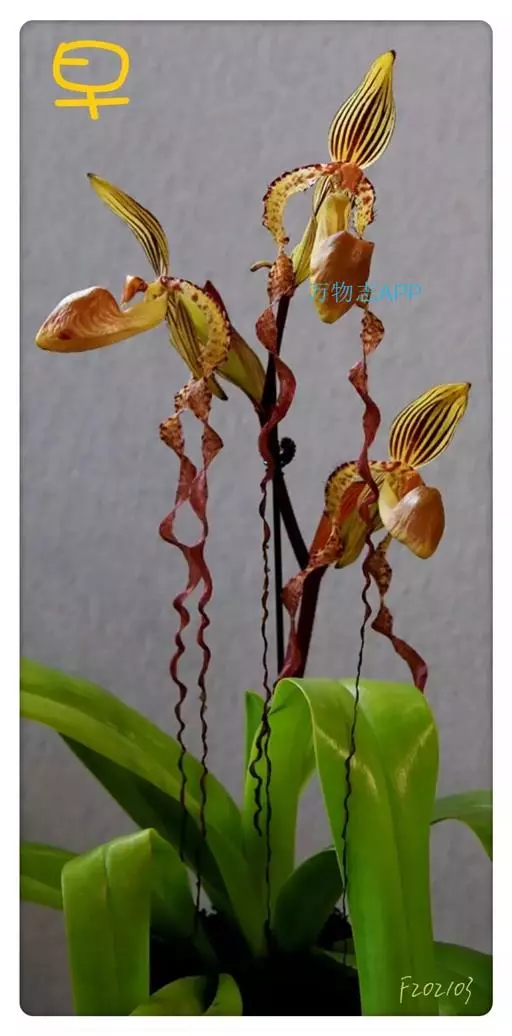 飘带兜兰性喜兰阳和空气畅通,所以不宜放于荫蔽处。植料最好采用芒骨(蛇木枝),夏天在表面铺一层温水苔,只需保持潮湿,植料表面变干时才浇水,肥料宁稀勿浓。