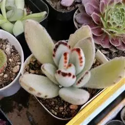 江户紫,景天科伽蓝菜属草本植物,是多年生草本花卉。花白色,但栽培中很少能见到花,常作观叶植物栽培。…