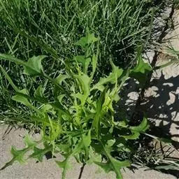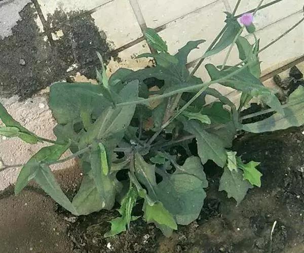 叶质较厚,下部叶密集,大头羽状分裂,长5-10厘米,宽2.5-6.5厘米,顶生裂片大,宽卵状三角形,顶端钝或近圆形,具不规则的齿,侧生裂片通常1对,长圆形或长圆状披针形,顶端钝或尖,具波状齿,上面深绿色,下面常变紫色,两面被短卷毛;中部茎叶疏生,较小,卵状披针形或长圆状披针形,无柄,基部箭状抱茎,顶端急尖,全缘或有不规则细齿;上部叶少数,线形。