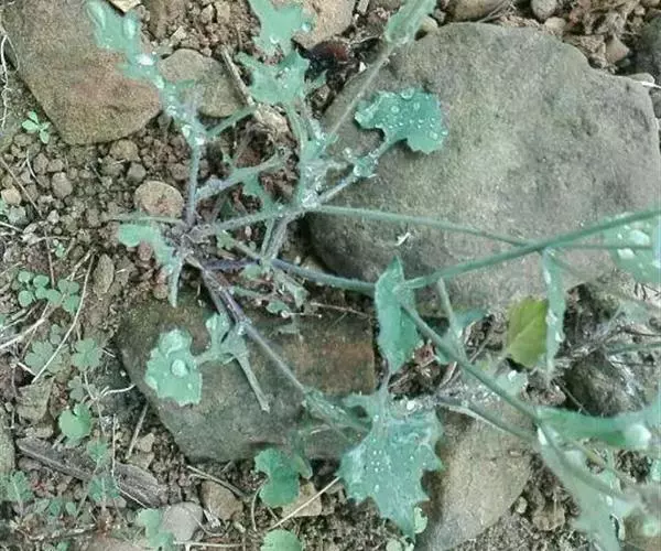 一年生草本,根垂直。茎直立或斜升,高25-40厘米,稍弯,通常自基部分枝,灰绿色,无毛或被疏短毛。