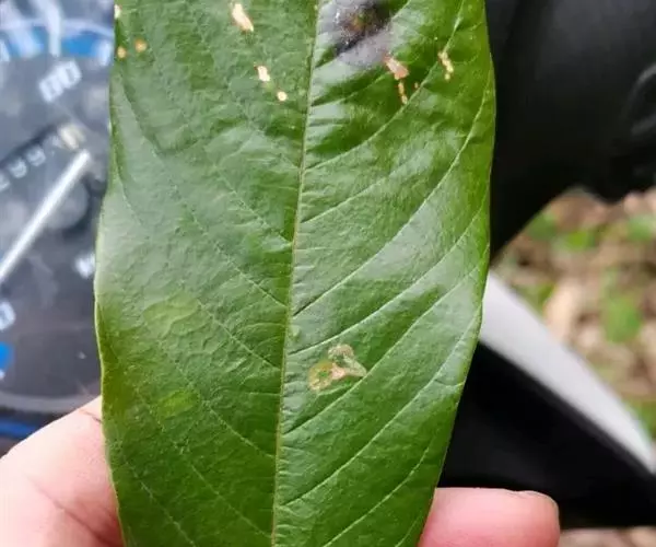 木兰突细蛾(Gibbovalva urbana Meyrick)是危害观光木叶部的主要害虫。该虫以初孵幼虫潜入观光木叶片组织啃食,形成棕褐色虫道,随着虫龄的增大,被害处的虫道逐渐扩大成虫斑,往往一个叶片2~6有个虫斑,被害的叶片逐渐枯黄脱落。