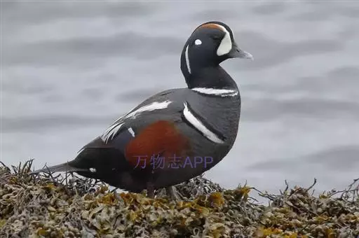 丑鸭(学名:Histrionicus histrionicus)体长33-54厘米,翼展56-66厘米,体重500-726克。具有非常丰富多彩的羽毛,酷似意大利哑剧中多姿多彩的角色——丑角,故名之。栖息和生活于溪流旁,岩石和灌丛间的深凹处,树洞中。常成对或成小群活动,非繁殖季节也集成大群。飞行迅速,但通常不高飞。主要以动物性食物为食。觅食活动多在白天。常在水流湍急的江河、山区溪流和多岩礁的海岸附近觅食。分布于冰岛、格陵兰、阿拉斯加海岸、西伯利亚东部、贝加尔湖西部山脉、阿纳德尔盆地、堪察加半岛、萨哈林岛、千岛群岛、朝鲜半岛、日本(中部),以及中国的东北(中部)、辽宁(新金、旅顺)和山东等地。