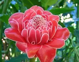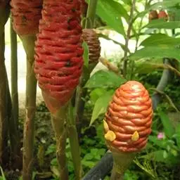 珊瑚姜是姜科、姜属植物。株高近1米。叶片长圆状披针形或披针形,长20-30厘米,宽4-6厘米,…