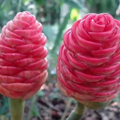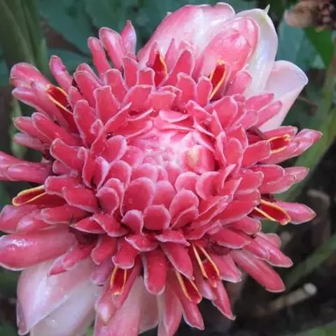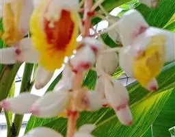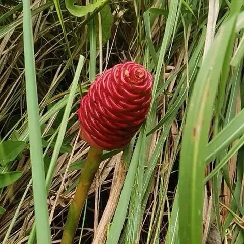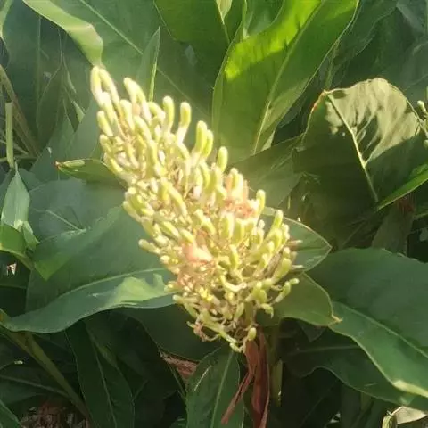 密苞山姜是姜科,山姜属多年生草本植物,株高可达1.5米。叶片椭圆状披针形,顶端渐尖,并具细尾尖,基…