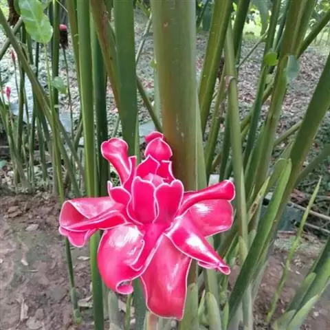 瓷玫瑰是姜科艳山姜属多年生草本植物,植株丛生,株高3-7米,叶互生,二行排列,长圆状披针形,叶色深…