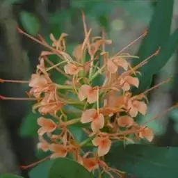 海南山姜是姜科,山姜属多年生草本植物,叶片带形,顶端渐尖并有一旋卷的尾状尖头,基部渐狭,…