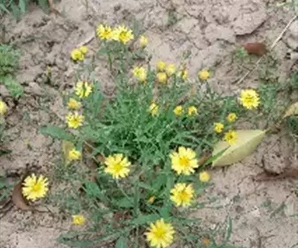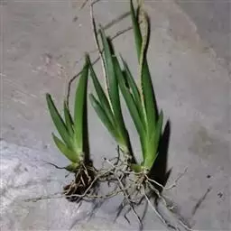 本品呈不规则扁圆形,多有2~3个爪状分枝,长1.5~5cm,厚0.5~1.5cm。表面灰白色或黄白色,有数圈同心环节和棕色点状须根痕,上面有突起的茎痕,下面有连接另一块茎的痕迹。质坚硬,不易折断,断面类白色,角质样。气微,味苦,嚼之有黏性。